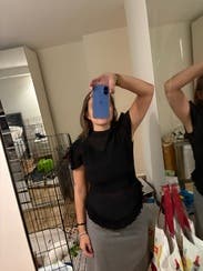Overall loved the style of this top, thought it was so flattering and cute. I could have probably gotten an M and it would have worked too but the L still looked great. Just wasn't a fan of the material. I feel like it got smelly pretty quick and then the bounce of the material sometimes made it bunch up weirdly.
