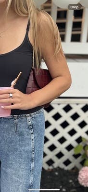 I wore this bag to an engagement party and out to dinner, and it continued to receive compliements! It is on the smaller side, however it fit my phone, small wallet, and lipstick perfectly for an event. It was light and easy to keep on my arm all night. Very stylish and fun and the dark red color is beauitful.