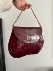 This bag is so adorable - maybe not practical but that isn't always the intent! It's a beautiful textured burgundy, structured but also uniquely shaped. I absolutely love it.