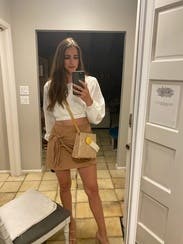 This bag was the perfect wing man for this summer. I carried it to 60% of events I went to this summer. It’s a neutral bag so it literally went with anything but the shape and fun design features made it something that people always asked about. The magnet inside was also helpful for closing. The shape wasn’t always the MOST functional because small opening up top but you can fit w shocking amount into the bag and I never felt like I was shuffling around in it!
