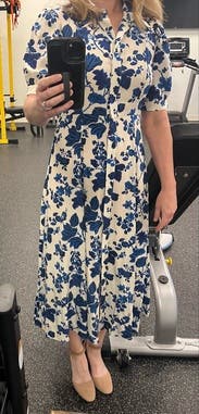 I loved the cut of this dress. Wore for work a couple times. The middle button was a little tight but otherwise such a nice fit and pretty fabric. Would buy if it wasn’t so expensive!