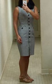 Loved this dress! The button detail was cute, but don't worry it has a zipper. The length was perfect and fit was just right. Highly recommend for work.