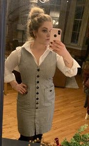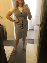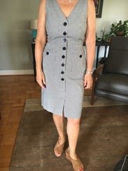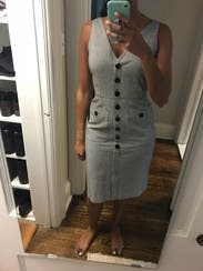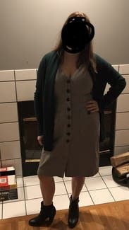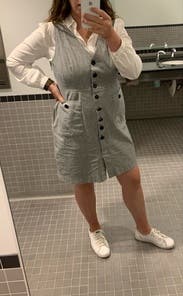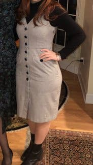 This dress is a wardrobe staple! I wore this with a button down underneath for a winter layered look but could definitely take you through all seasons. If you are curvy, size up. I'm normally a 10 and initially tried that size, but it looked much better a size up in a 12. Cut is flattering. I may have to buy this!