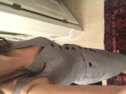 This stress feels wonderful. It's stretchy, flattering, and the buttons are sowed on so you don't have to worry about gapping! It runs slightly large due to the stretching. I'm actually going to try a size down and then possibly buy it.