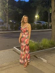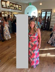 Loved, loved this dress. Felt really beautiful in it. I was surprised that I needed a size large for the right fit, but appreciated the ability to order two sizes to try for my event. Consider sizing up or ordering two sizes — I’m typically a size 6 in dresses for reference and had to size up.