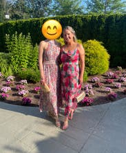 I loved this dress! Colorful and a great fit. Not too low cut, perfect for a wedding