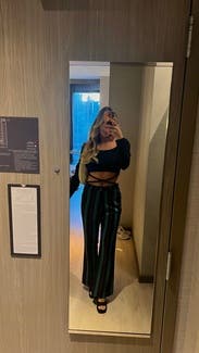 This top is awesome, and I love the sparkle in the fabric! I wore on vacation in Paris for a dinner out when it was a little chilly. It looks super nice and is comfortable. I love the tie feature. It’s definitely cropped but accentuates the abs.