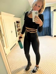 This was stretchy and comfortable, and had just the right amount of subtle sparkle. I was comfortable wearing this out to dinner and also dancing. It was perfect for the transition from hot summer into hot fall. Lol