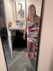 The fabric is “heavy” but it just hugs curves just right and perhaps a little warm for the height of summer days in FL. Would rent again in “fall” and pair with a cute denim jacket for brunch or happy hour.