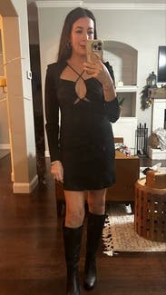 Girls’ night out! Boyfriend loved this dress and it was marked down to $55, so I bought it. Sexy and warm with the lining and long sleeves. Nice material. Might be too short for taller ladies as it was quite short on me,