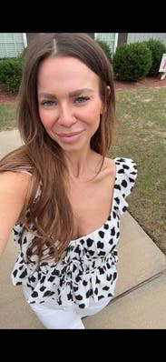 This is a super cute top but I didn’t like the fit on my chest. It was low cut and couldn’t wear with a regular bra. I didn’t wear.