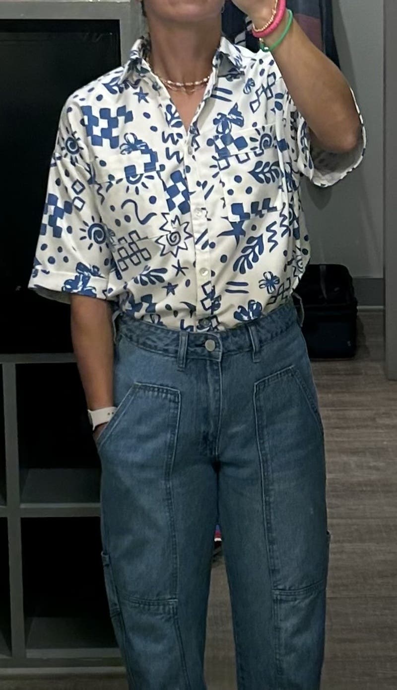 We are loving the wild doodle pattern on this button-up shirt by Louna for lending a playful touch to your street style.