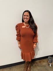 Puffed sleeves frame this sweetly flounced sweater dress we’re basically obsessed with from Love, Whit by Whitney Port.