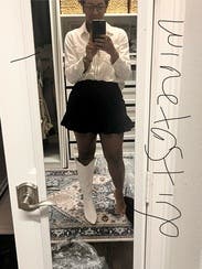 This skirt was really short, and the waistline has gathering that looked odd on me. I have a longer torso, and the waist didn't hit at the right spot, making the top bunch up in a weird place.
