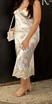 I loved this skirt!!!! Such a pretty print and material. Sometimes slip skirts can be unflattering on me as a pear shape, but this one fit great!
