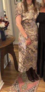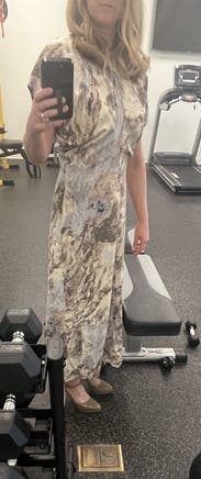 Different cut, but it fit my shape just right. Flowy on top and bottom and fitted on the waist in the right spot. Wore with boots and a cowboy hat for an “elevated western” dress code
