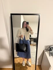 This was super cute basic summer dress. I wore for a backyard bday dinner. The straps kept falling off my shoulders so maybe size down? But overall very cute