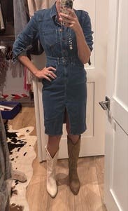 Felt like an urban cowgirl in it. Dress fits great, tight in all the right places, but comfy. Length works for me. Quality of jean fabric is nice. Had fun wearing it!