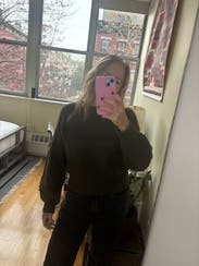 This color is everything! I wore this piece several times and was able to dress it up for work and dress down with jeans and even yoga leggings. Can be itchy if you’re sensitive to that sort of thing. I like to wear my sweater sleeves ruched up 3/4 but I noticed there was a little too much give in the sleeve cuffs so they wouldn’t stay put in that position for very long— not a deal breaker, but just something to note. I probably could’ve sized down one but I wanted a more oversized fit. I also liked where the hem hit on my waist, it was easy to cuff under for a more cropped or tucked look. Will definitely be renting again.