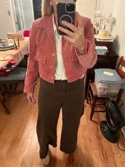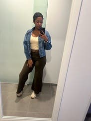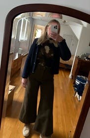 These pants actually fit really well and I liked that they were more of a greenish brown. However, I didn't like the wide + flare combo. It made them a bit too "swishy".