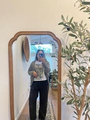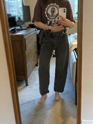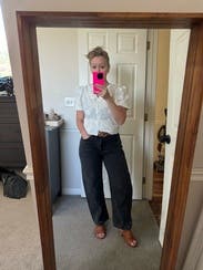 But I wore them anyway! These were a little too short and the waist was a little big, so I wore them slung lower on the hip and with higher shaft boots. I felt like a cool girl. I wouldn't buy them, but I'm confident enough now to try other barrel leg options, and I think they are worth renting if you are shorter than me!