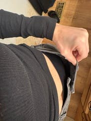 My hand is in a fish lengthwise behind in between my back and the waistline for reference. Waist runs large in these because i have never worn smaller than a 24 in my wildest dreams. Size down if you are a true 0 I would skip ⏭️ these because the waistline will be too big for you. Will wear w a sweatshirt