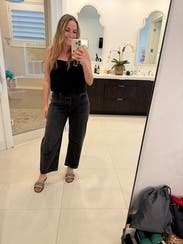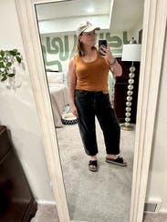 This trend is easy to wear and flattering for my body when I can't fit back into pre-pregnancy jeans yet. The cut is loose and forgiving but not frumpy.