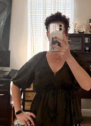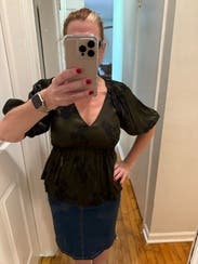 The fit of this top is very forgiving, and the neckline makes it a little sexy. I wore it with jeans and heels to listen to live music at a bar.