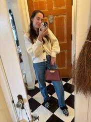 These! These jeans fit so nicely and can really be dressed up or down. I wore them more casually today but can definitely see them working for a date night with a pair of heels. They are also a great length on me at 5’6!