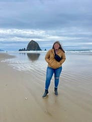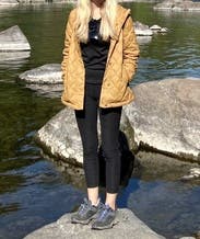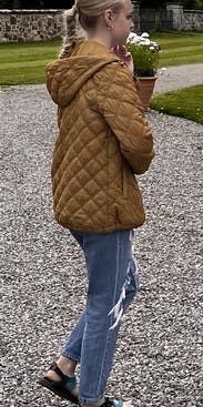 I rented this jacket for a hiking trip. It was perfect to travel with. The jacket folds up so tiny, making it easy to fit in a suitcase. My only complaint is that the arms were kind of short! I’m typically an XS from madewell, but was surprised this was smaller than expected.