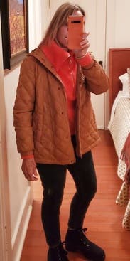 Wore in San Fran in November. Packable, easy to roll up in a backpack. A little frumpy but it did it’s job. Nice color.