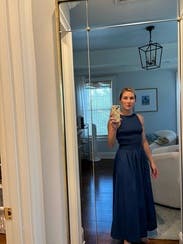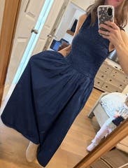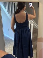 Also loved the mid back openness of the tank in the back. The best part was the color. It wasn’t quite navy. It was a very rich dark blue. I want to say a deep Prussian through. Beautiful and rich color. Loved the length. Not too long, but like tea length worked really nicely. It was cotton and super well-made, uncomfortable.