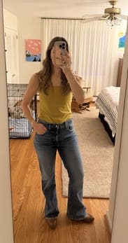 Finally found a pair of jeans I love! While a bit on the short side (5’11”), I know from experience that Madewell longs are too long for me. Feels like a comfy pair of worn in jeans. Love the slight bootcut, sits perfectly on my waist. Ever so slight stretch. Probably will buy!
