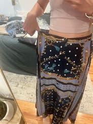 5 stars for the print, the quality, the built-in shorts, and the little belt! The size I got was too big for me though. I think I went by Maje's size chart and sized up from my usual size in other brands, but this skirt was too big. I was able to make it work, but the back being elastic, I really could have gone with the large. (My waist is 30.5 in). Would love to rent again in a smaller size.