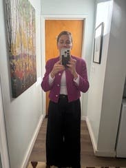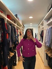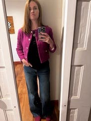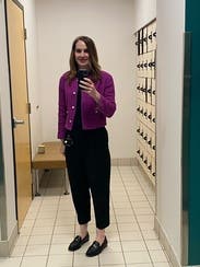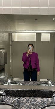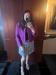 This was such a fun color. I wore with navy underneath, and it was perfect for meetings in the office and also for a day presenting on camera. It's a perfect weight as well. I would definitely rent this again.