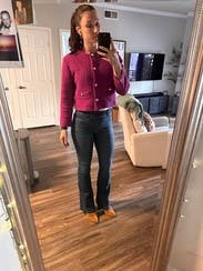 I wore this a lot but the sleeves were about 4 inches too short for my arms. Loved the color and the fit through the body.