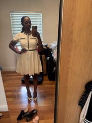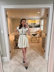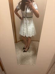 This dress was classy and sharp, perfect for a polished look. The pleated skirt gave it movement and structure, and the detailing on the buttons made it feel elevated. However, the waist has no give at all — so if you’re curvier or in between sizes, I’d suggest sizing up. Once on, it looked great and felt very put together, but the fit at the waist was definitely restrictive.