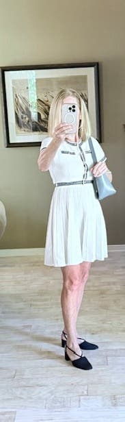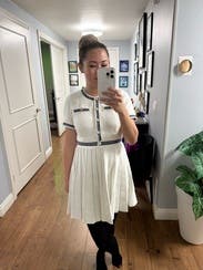 This dress was so cute! Extremely flattering and it made me feel like I was going golfing, but also a professional. If that makes sense, fun and flirty. Got lots of compliments, but also noticed that it made my boobs. Look ginormous lmao