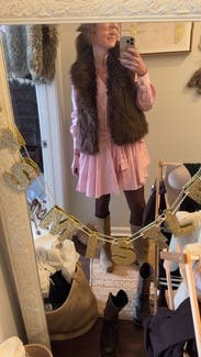Wore this with a brown fur vest and it was so cute and warm