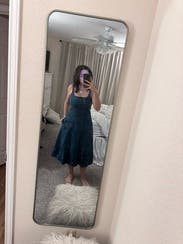 So many compliments on this dress. I felt so beautiful. There are pocket and the bust is just snug enough that I didn’t need to wear a bra (rare occurrence for me). Highly recommend