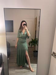 I wore this at a very exclusive resort to dinner in Big Sur. It fit the vibe perfectly. Effortlessly elegant but the slit made it playful and sexy at the same time. It was a bit large in the chest but I managed to place it semi strategically to keep everything in. Was a bit long as well, I wouldn’t have been able to wear it without heels.