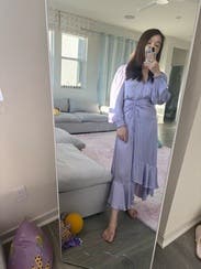 Loved this dress! It’s elegant and I felt beautiful. Wore this to a wedding on an unseasonably hot spring day and it kept me surprisingly cool during the outdoor ceremony. It did rewrinkle after a long car ride but a quick steam would smooth it out. I’d also recommend having a safety pin on hand as the bottom of the dress does flutter open and may reveal more than intended.