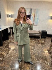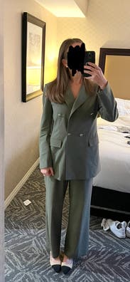 These pants fit nicely and went well with the matching suit jacket, they were the right length for tall girls with lower heels. Im here for the green suiting revolution!