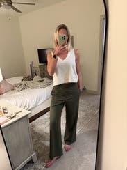 I am very self-conscious about my weight and the way I look in clothes. This is a new style pant for me. My husband loves new styles of clothing. As silly as this may sound, we had a dinner event. I was getting ready and he was taking a quick nap. He is usually very critical of the way I dress. He immediately sat up and said “this is looks great!”