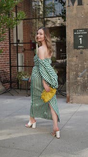 With bright color and leather texture this Mansur Gavriel clutch has just enough room for all of your essentials