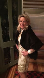 I rented this to wear to a daytime charity luncheon. I was the co-chair, so I wanted to go a little fancier. When I received it, I tried on the 10, and it fit everywhere except the bust. I was surprised that the arm length and leg length were perfect. it even fit nicely around my waist on hips. The only thing is that it was so tight on my bust. The jeweled collar and the tightness around my bust made me look strangely top-heavy. It was too much, and extremely unflattering for me.