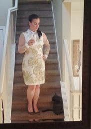 I was excited to receive this dress and wear it for a fundraising gala that was being hosted by my husband's work. However, once I tried on the dress, I decided not to wear it. The fit was fine, but I found the sleeves a little rough and itchy for my taste. Furthermore, I felt like I look like a frumpy, middle-aged, Asian bride while wearing this dress - not the look or vibe I was going for. (For the record, I am 32 and Asian.)