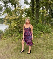 Ive ALMOST used RTR for 10 events. Since I couldnt go shopping bc of covid, & bc for most of the time leading up to the event, i was unsure if it would happen- I ended up using RTR. What a cool service! I got 2 sizes of my dress + a reduced price second style. The dresses arrive in a nice foldable garment bag. This dress is totally lovely, hugging all the right spots. And offering some stretch where you want it. The slit is great for dancing. The straps are long but i used a cute strap connector