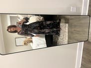 This dress was very awkward. It’s extremely low cut even if you can fasten the snap, it’s still very low. It was big in the shoulders and very long. I didn’t wear out, but I wanted to add a pic for others my size looking to rent.