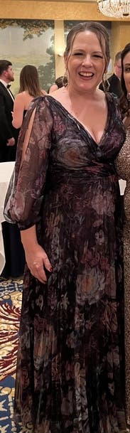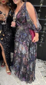 This dress is gorgeous and flowy! I wanted a dress that didn't make me feel like an old lady at a wedding. It was perfect. A little busty but that was solved with 2 strategic safety pins. Would love another reason to wear this again!